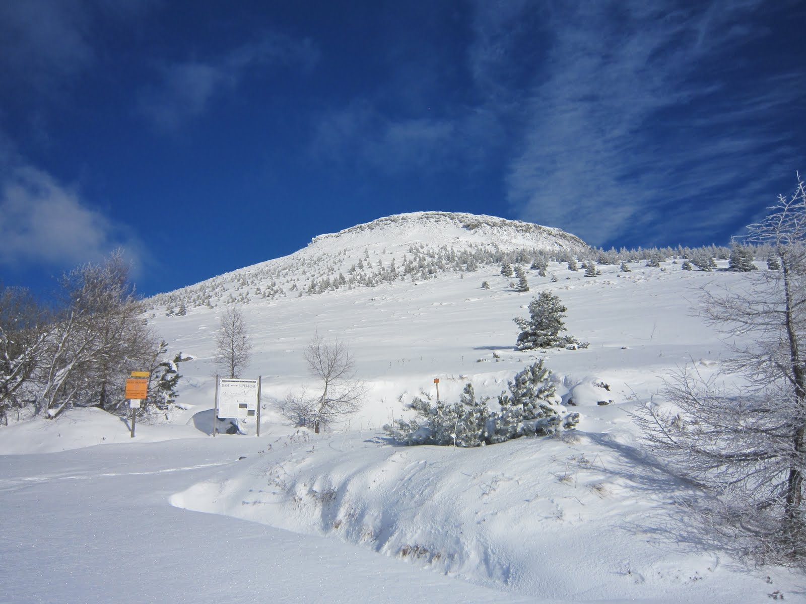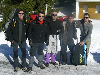 Et voilà 5 irréductibles auvergnats prêts pour l’ascension du sommet à travers la neige fraiche de la veille… En perspective un bon décrassage de 45min pour évacuer les excès de la veille…